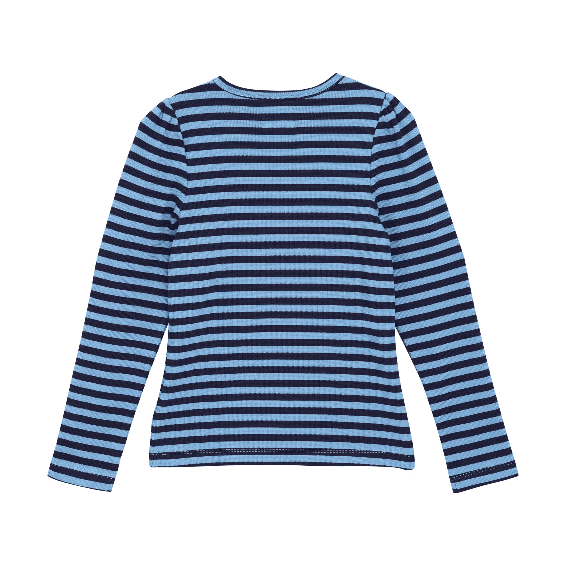 Long-sleeved, striped T-shirt from Creamie. The T-shirt has a round neckline and there is a slight puff in the sleeves. The T-shirt is in a ribbed cotton quality with a bit of stretch, which makes it comfortable to wear. Certified acc. to GOTS - organic CERES-0366