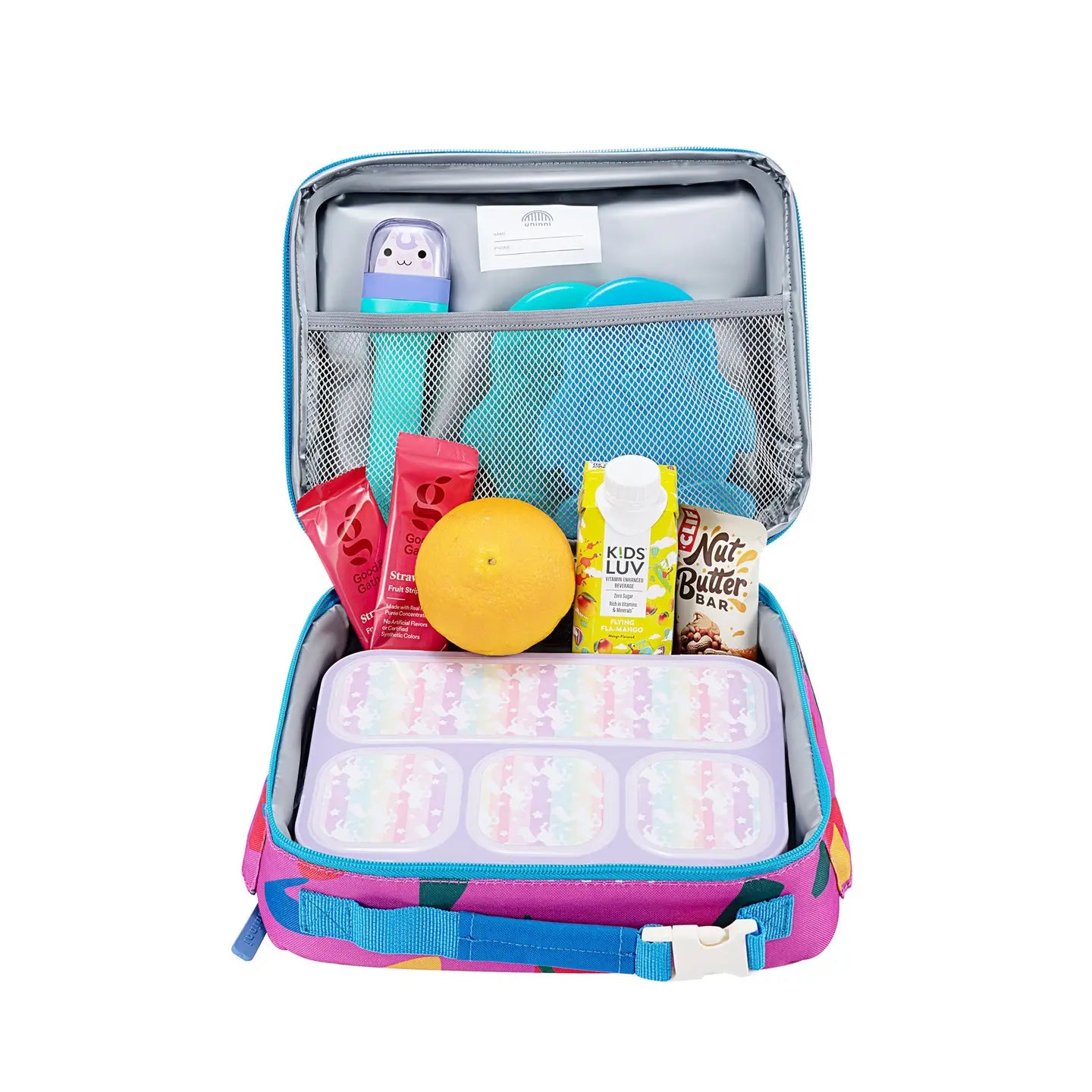 - With two hidden side buckles and one on the padded handle, kids can attach their lunch bag to the uninni backpack for hands-free carrying.